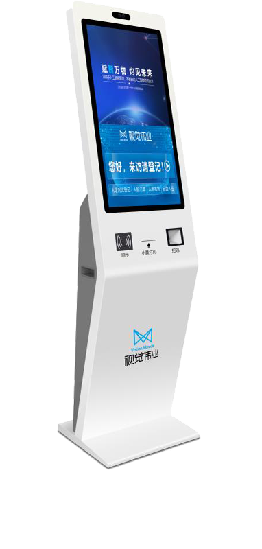 視覺偉業立式自助訪客機集人臉識別、身份驗證、訪客管理等功能為一體,通過人臉識別+身份證雙模驗證方式進行人員的人證比對與通行權限管理,自助辦理訪客預約功能,提高樓宇、園區等場所人員出入與訪客管理的效率和安全性。